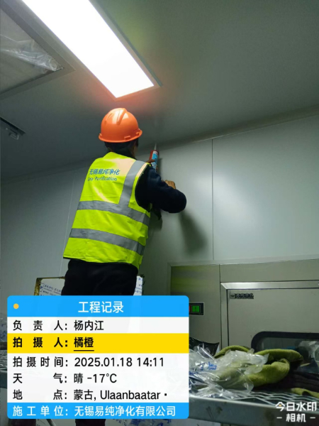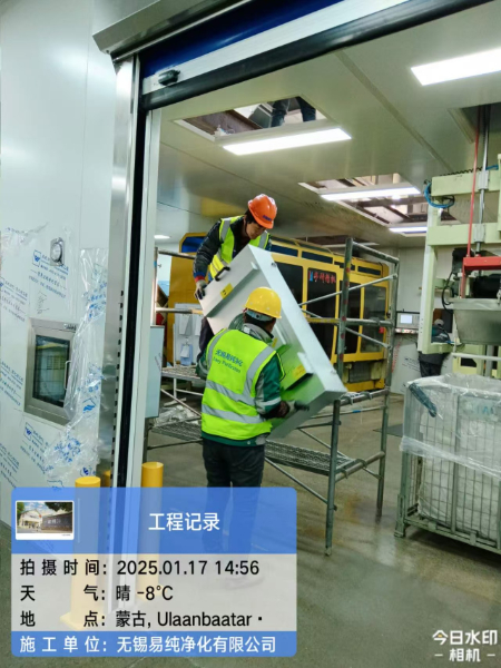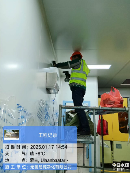 蒙古國可樂公司瓶蓋、瓶胚10萬級無塵車間安裝過程中,業主在眾多供應商中選擇易純凈化做為潔凈車間的安裝施工方,是對易純公司的經驗和能力的認可,也為易純走向國際化提供了一個拓展和展現的平臺。